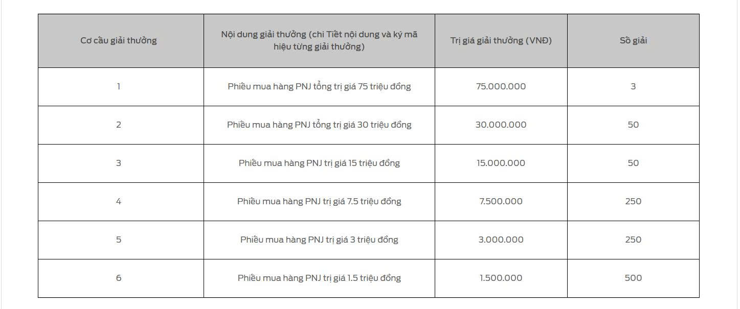- Giải thưởng là phiếu mua hàng và trang sức PNJ, không quy đổi thành tiền mặt.