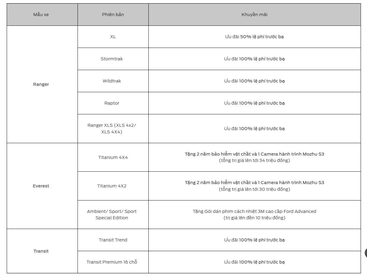 Ưu đãi đặc biệt cho từng dòng xe tại Hải Phòng Ford